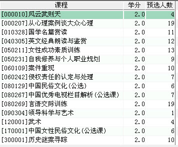 3)如果“正选结果”链接点击后没有显示选课结果,说明你前一段时间没有参加选课或者因为所选课程人数太少,无法正常开课。这种情况下你需要参加补选。