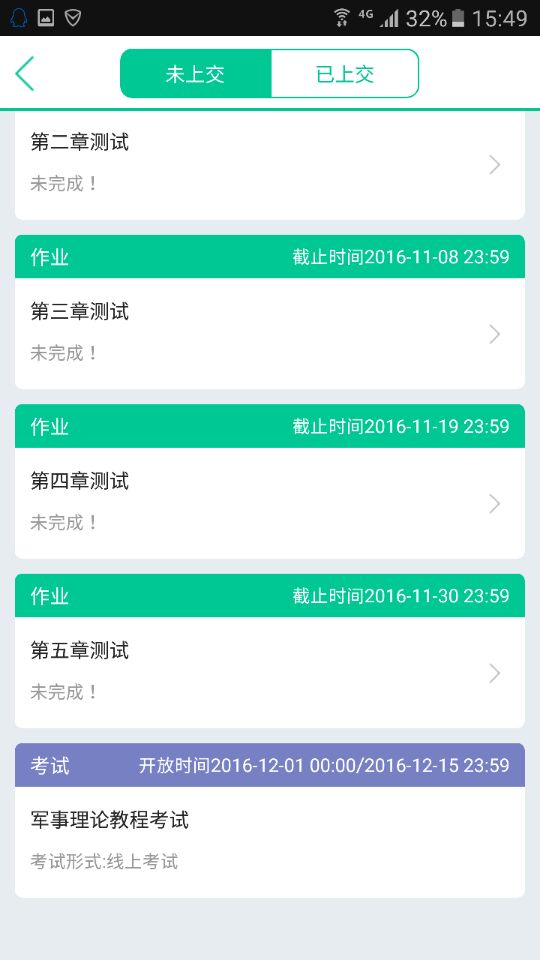单元测试须在规定时间完成,结业考试将在12月1日~15日开放考试。