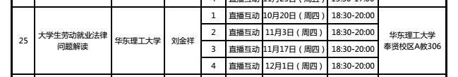 大学生劳动就业法律问题解读见面课统一组织,学生在上述显示的见面课时间务必去博文楼110参与见面课集体教学。