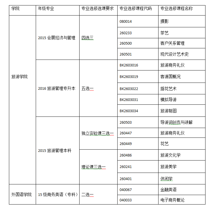 现将2016-2017学年第二学期专业选修课选课事宜安排如下: