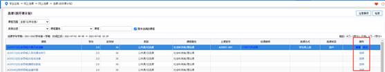 通过“选课(按开课计划)”提交要选择的课程。课程范围选择【主修(公共任选)】,点击检索。点击课程列表最后【操作】一列中的【选择】,可以提交选课结果。选课结束后,已经选定的课程会自动置顶,届时点击【退选】可以退掉课程。