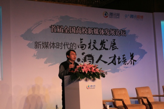2012年12月10日,由腾讯微博发起的“2012全国高校新媒体发展论坛”在北京举行。新媒体领域专家、全国各高校领导、党宣团委负责人、新闻学院院长以及高校微博运营人员等百余人汇聚一堂,共同围绕“新媒体时代的高校发展与人才培养”这一主题进行了深入的交流探讨。