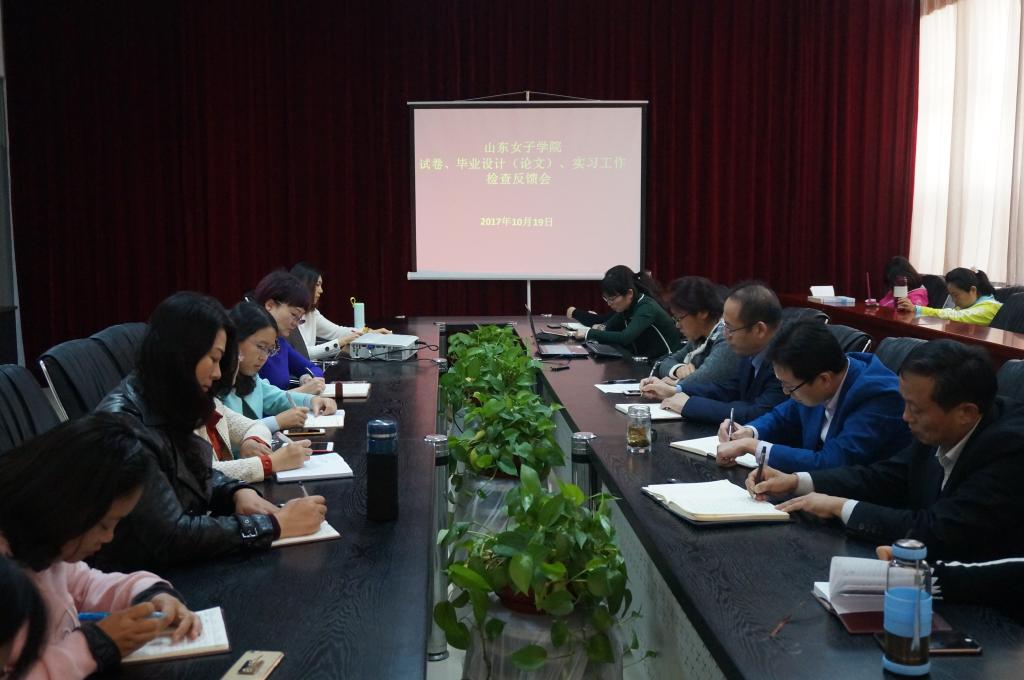在开始检查前,检查组专家们一起学习了《山东女子学院考试工作管理实施细则》、《试卷评价表》的指标及《山东女子学院本科生毕业设计(论文)工作管理规定》的要求。教务处处长穆勇强调要严格按照评估时试卷、论文、实习检查的标准进行,决不能放松各项标准,旨在巩固评建成果,形成良好的行为习惯,规范教学环节管理,提高教育教学质量。