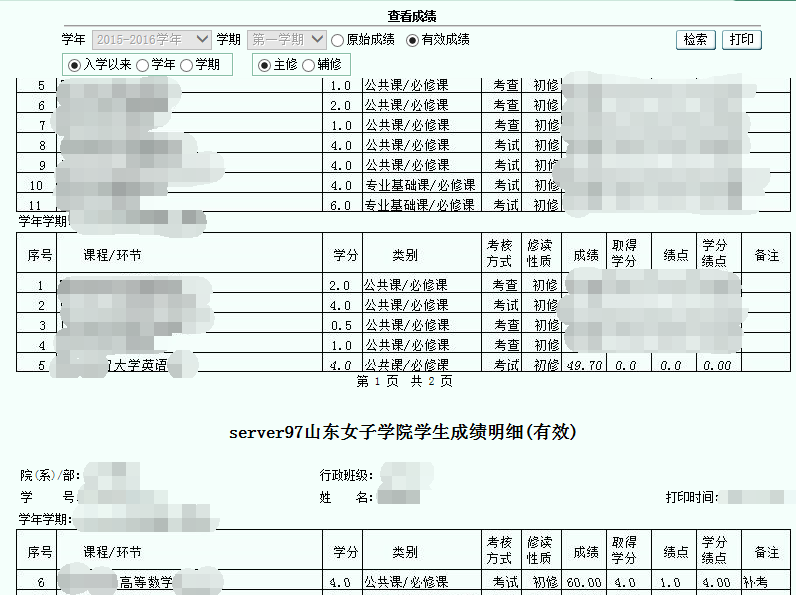 如果在教务系统中按照入学以来——有效成绩查看,则会看到参加补考的这门课程最终认定的有效成绩。