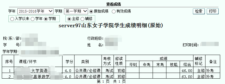 上图是按照原始成绩查看的,能看到刚刚结束的这次补考的实际取得的成绩。