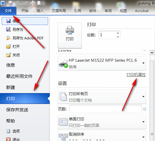 在Word2010下,打印前先选择“文件”——“打印”,再点击“打印机属性”,“效果”选项卡选择将文档打印在A4纸上,并勾选“缩放以适合”。