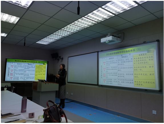 活动第一个环节,薛绍聪以“高校教师教学心流体验——基于教育目的的教学有效性实践”为主题,从“心流”这一心理学概念导入,分析教育的目的--应然与实然,对中外教育家的思想进行了解读,得出确立以培养学生健全人格为基础的教育目的结论;然后从增强教学心流体验,实现教育的目的,薛老师从information和transformation两个方面的案例形象地对心流进行了深度剖析;再从高校教学的本质-占有还是存在,期望老师们对教学事业心无旁骛、全情投入,幸福的境界在心中降临;最后从“高校教师发展的目标--要有学术视野、学者风范以及学养深厚”进行了总结。在薛老师分享过程中,大家听的全神贯注,不仅感受到了薛老师对教学的热爱,同时这种激情和热情也感染了在场的每一位老师。