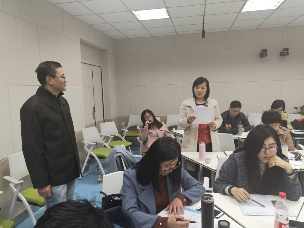活动最后阶段,何教授与现场教师进行了互动,现场指导教师编写教学设计的“教学目标”部分,教师们积极参与互动,旅游学院罗玉洁和教育学院王淑芹两位老师主动与大家分享了5分钟内编写的所授课程教学目标,何老师对两位老师所写的教学目标给了较高的评价。