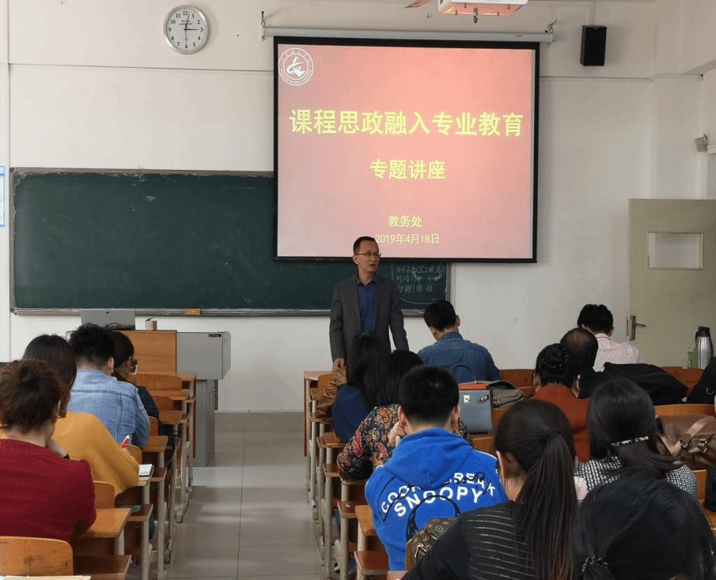 为深入贯彻落实全国、全省高校思想政治工作会议精神,坚持立德树人根本任务,全面推进学校课程思政育人工作进程,充分发挥专业课程与思政课程同向同行育人作用,教务处于4月18日下午举办“课程思政融入专业教育”专题讲座。本次活动特别邀请了山东省第五届高校青年教师教学比赛一等奖、齐鲁工业大学2017年度“德育教学好教师”苗旺博士做专题讲座。活动由教务处副处长李宏主持,学校2019年课程思政优秀教学设计一二等奖所有教师、各学院各教研室主任、首届教师教学能力提升研修班全体教师等80余人参加了本次活动。