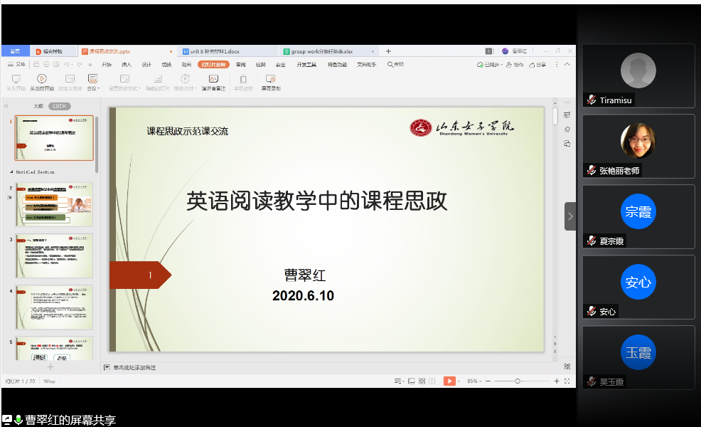 为全面推进学校课程思政建设,发挥课程育人作用。6月11日上午,学校邀请我校2019年课程思政示范课立项的三位教师开展了一次线上课程思政示范课建设经验分享活动。第二届教师教学能力提升研修班全体学员和对此主题感兴趣的教师参加了此次活动。